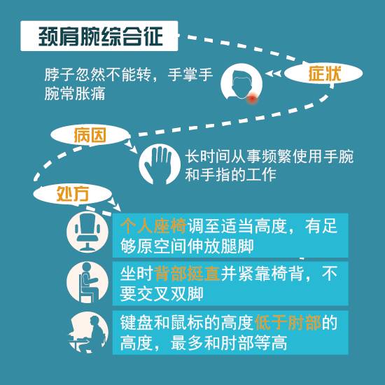 一天到晚坐在办公室,时间一长,容易引发各种疾病。高科技办公室病、颈肩腕综合征、电脑眼病、信息焦虑综合征、突发性地恶心、焦躁…这些常见的办公室疾病,你中了几招?戳图↓看处方,对症下药,让办公室"疾病君"滚蛋吧!