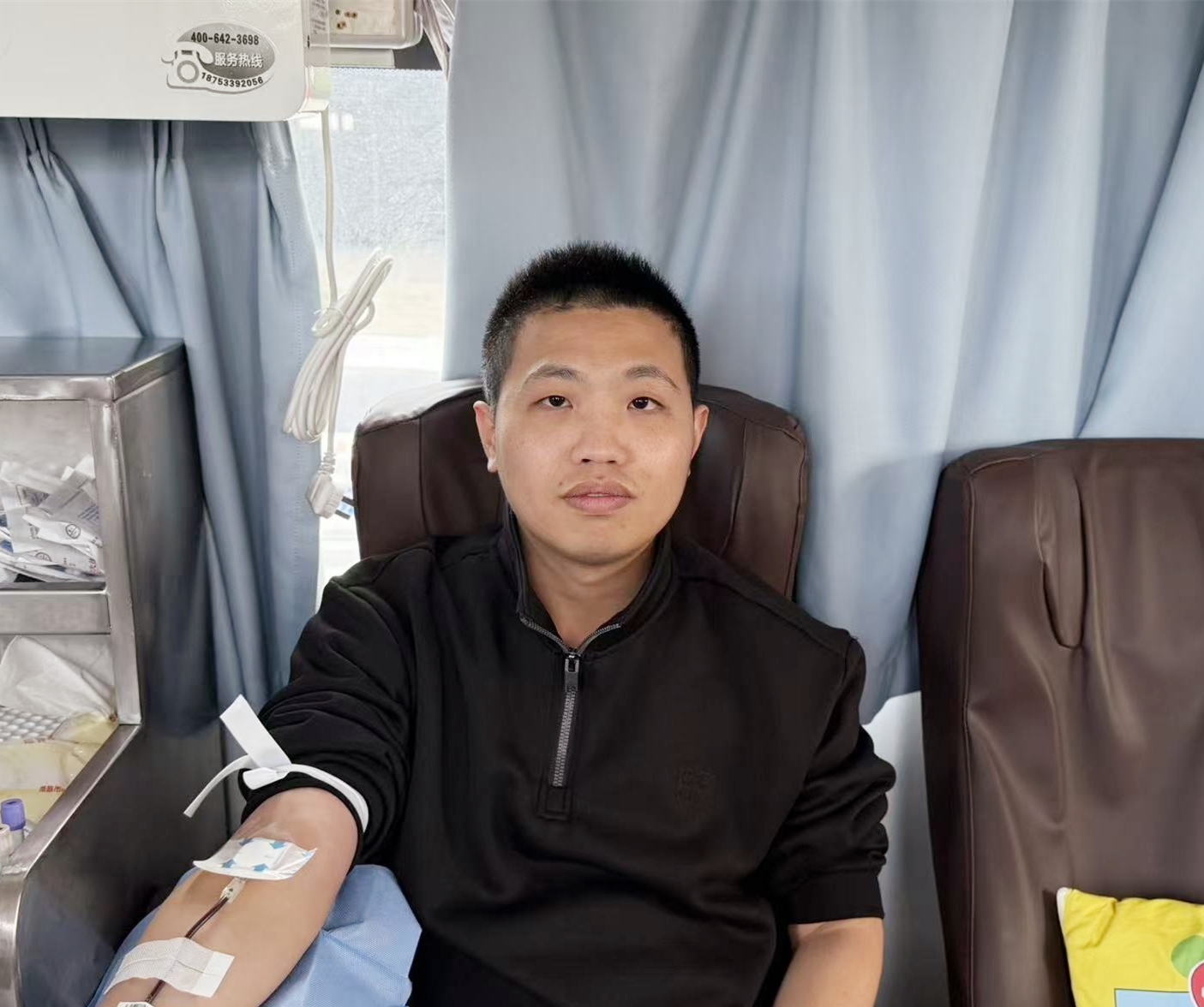 高瑞,大学时期便加入了献血队伍,在深圳时,还为一位患者捐献过造血干细胞。这次,当他看见献血车来到了他的单位,他也热心地伸出了手臂,同时,他无私的精神也带动了同事们加入献血的行列。
