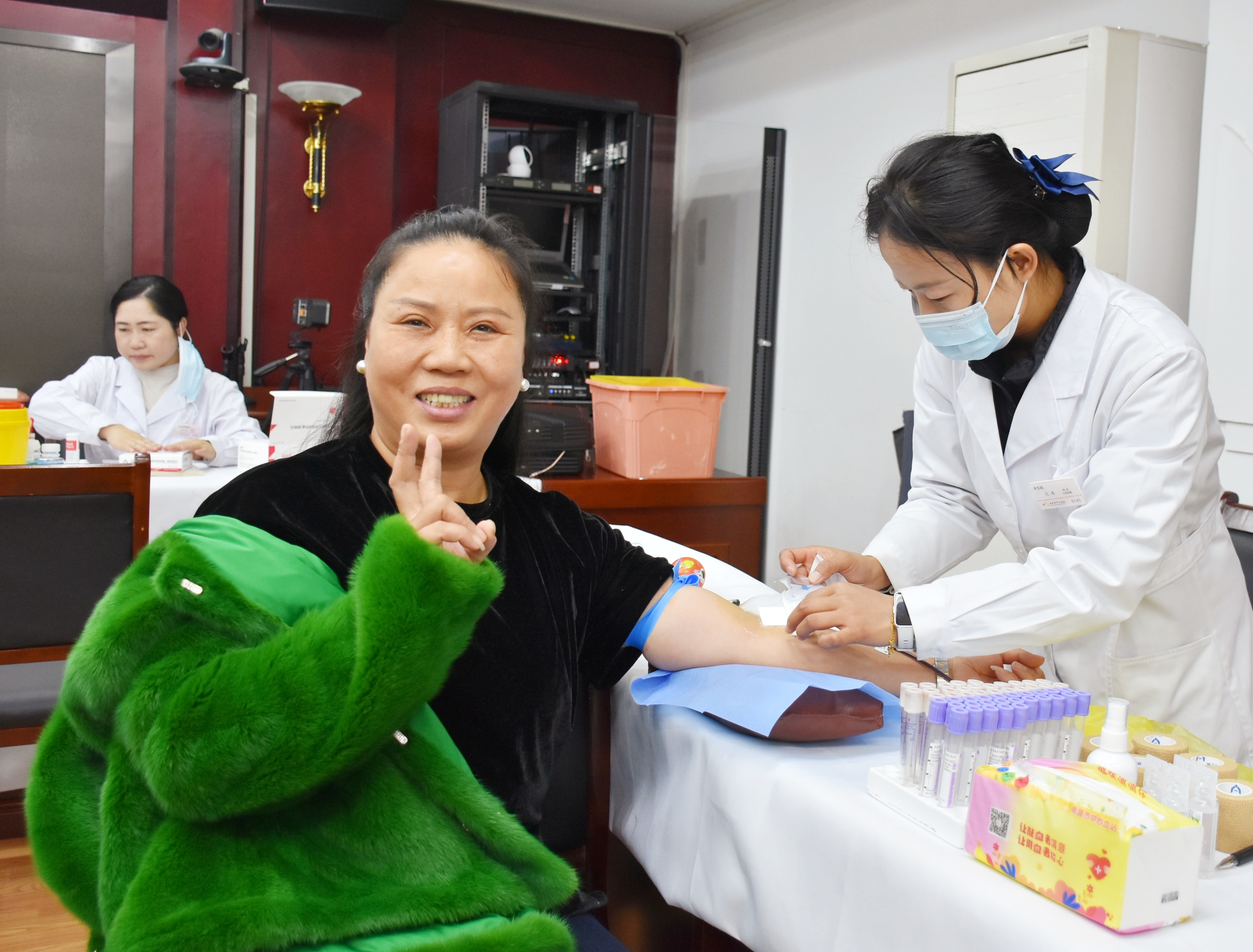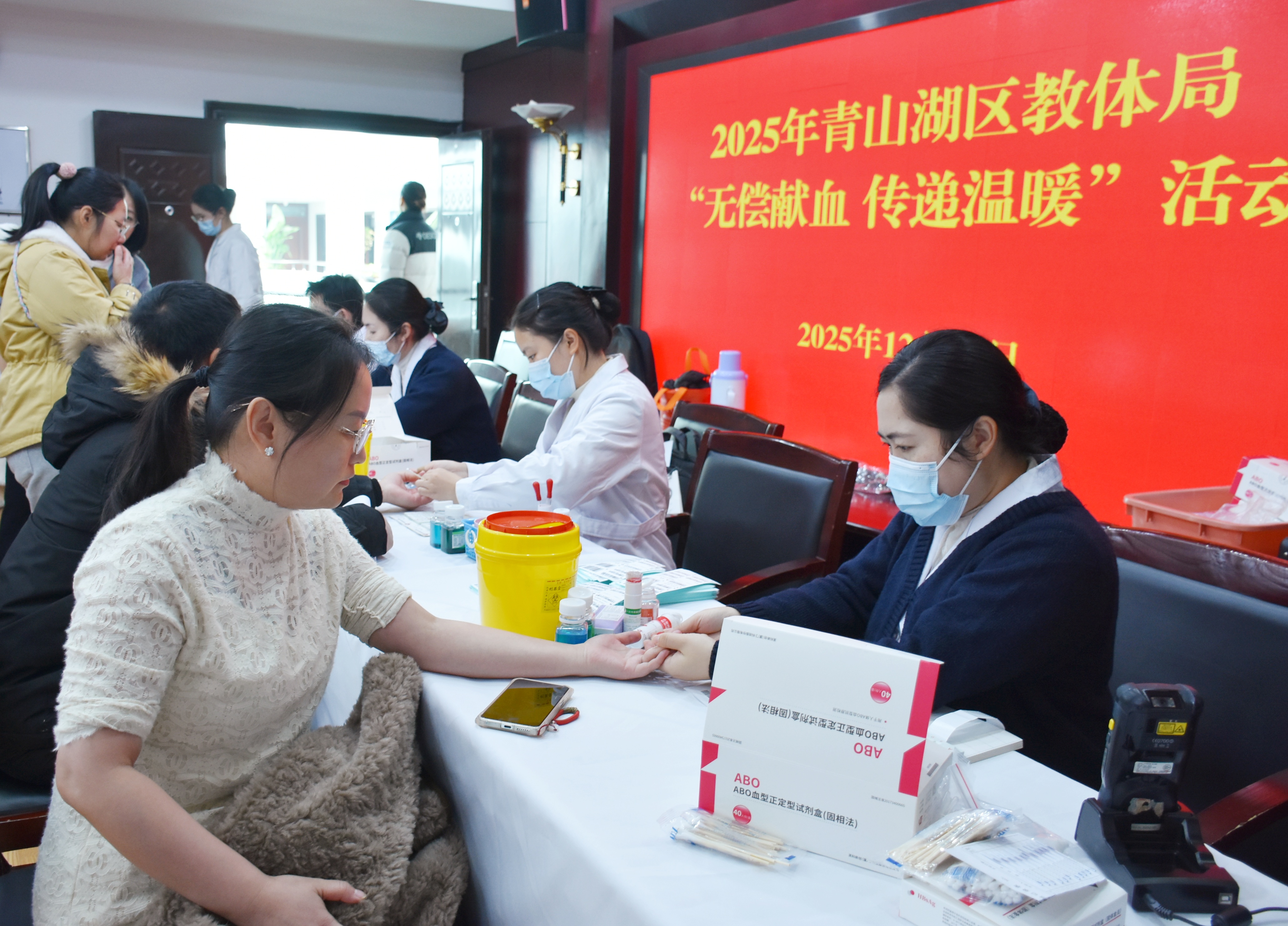 12月18日上午8:30,在青山湖区教体机关大会议室,有一群来自青山湖区属各学校和幼儿园热心奉献的教职工们陆续来到了这里。他们脸上洋溢着对无偿献血的热情,共同参与此次“热血迎新”献血活动。据统计,此次活动共有122名教职工积极参与,献血总量达3万余毫升。